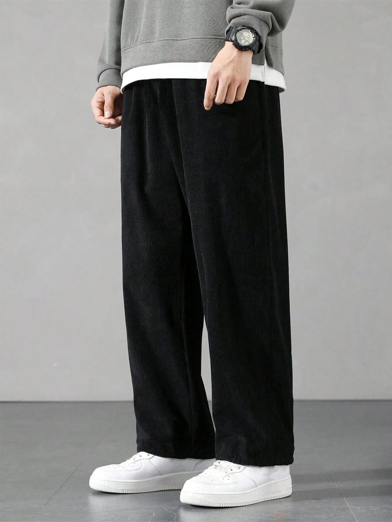- Caimento fluido, ideal para combinações com camisetas oversized, moletons ou jaquetas.