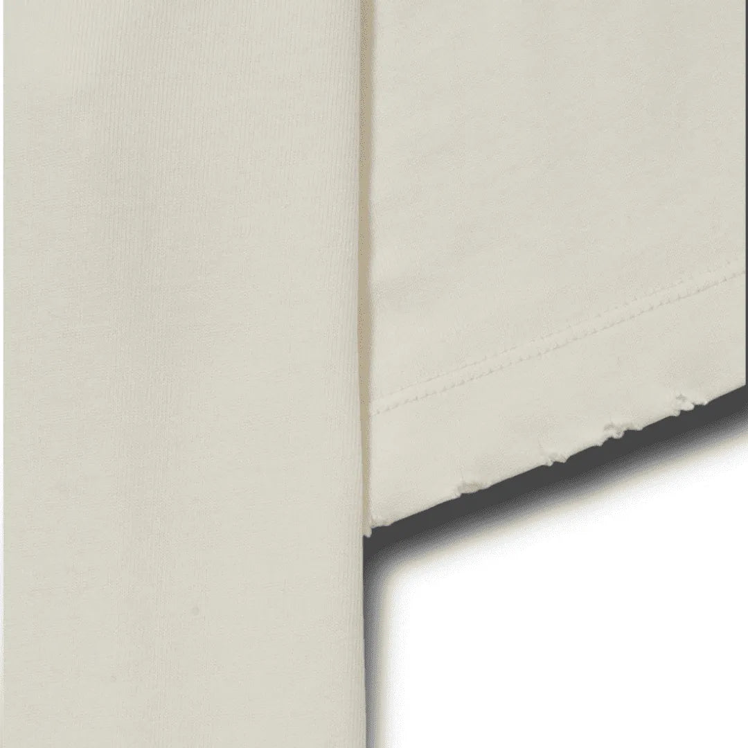Camiseta Piet é fabricada em malha premium 100% algodão com alta gramatura de 270 GSM. Com modelagem relaxed e gola de 2,5 cm, a peça exibe um visual vintage, com desbotamento leve e pequenos puídos na gola, mangas e barras. A peça apresenta taxas piramidais aplicadas na barra e nas mangas, além de um logo na parte traseira.