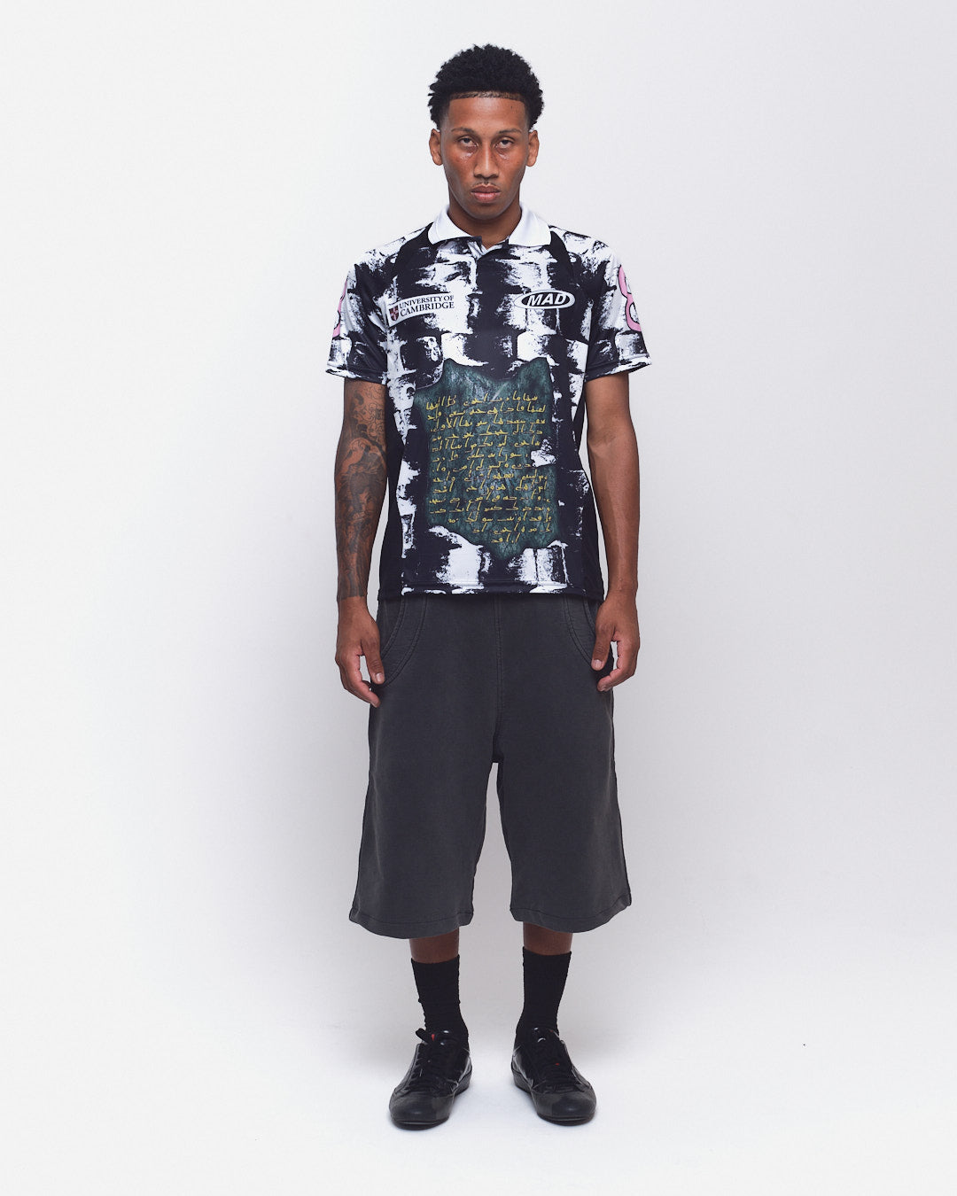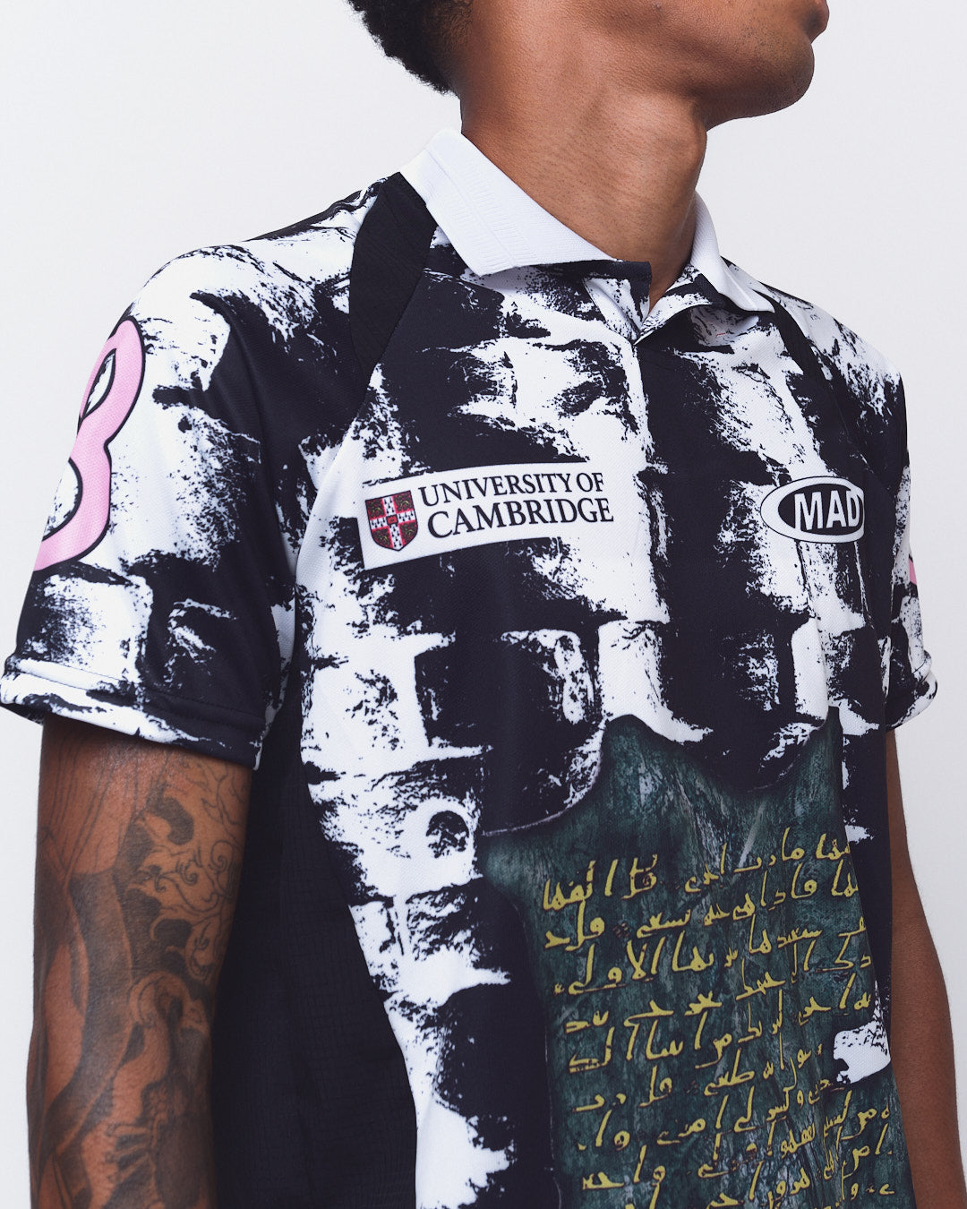 A jersey Ruínas é uma readaptação do modelo de jersey da Mad, com recortes laterais e gola polo, a peça é estampada em sublimação.